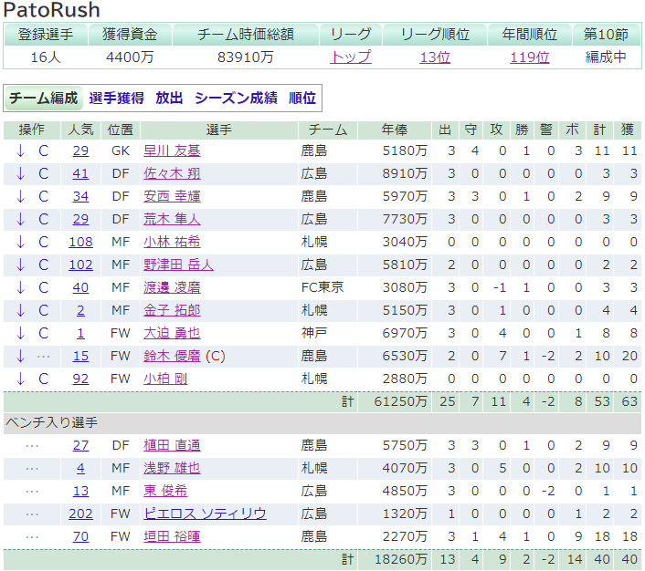 攻撃陣は好調の札幌も入れてみました。
